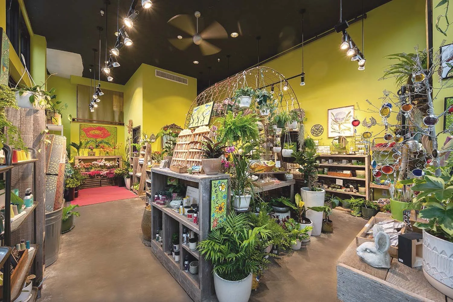 Located within a newly constructed mixed-use building, A Lot of Flowers is a boutique retail interior design project created from a vacant shell space into a vibrant, contemporary custom floral shop. The client envisioned a space that feels colorful and contemporary, yet grounded and complementary to the plants, pottery, and gifts merchandise, along with the custom floral arrangements she creates. A bold botanical palette animates the walls, providing a dynamic backdrop that enhances the layered merchandising, and natural textures and colors of the flowers and greenery. A contrasting black ceiling and directional track lighting create depth and visual focus, allowing product displays to read with clarity and intention.