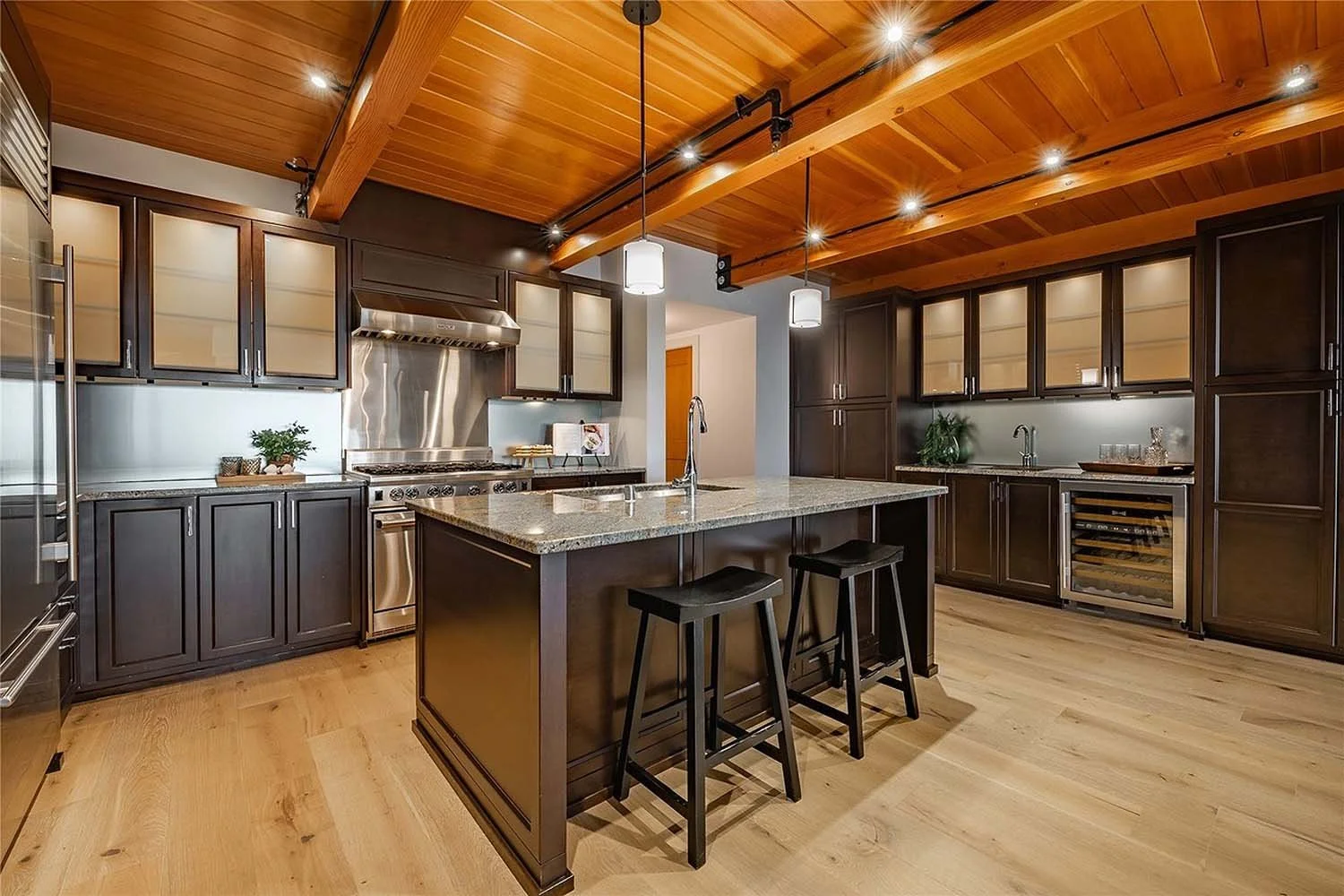 The scope included complete space planning, lighting design, custom cabinetry and built-in millwork, and the comprehensive selection and specification of all finishes, materials, fixtures, and hardware.